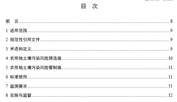 本標(biāo)準(zhǔn)規(guī)定了農(nóng)用地土壤污染風(fēng)險篩選值和管制值,以及監(jiān)測、實施與監(jiān)督要求。