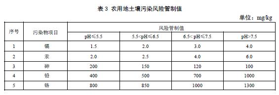 5.1農(nóng)用地土壤污染風(fēng)險管制項目包括鎘、汞、砷、鉛、鉻,風(fēng)險管制值見表3。