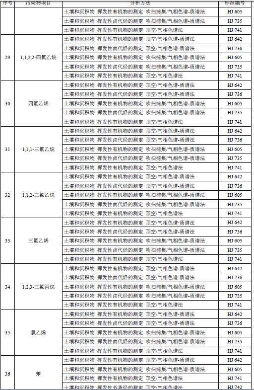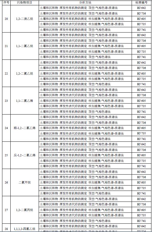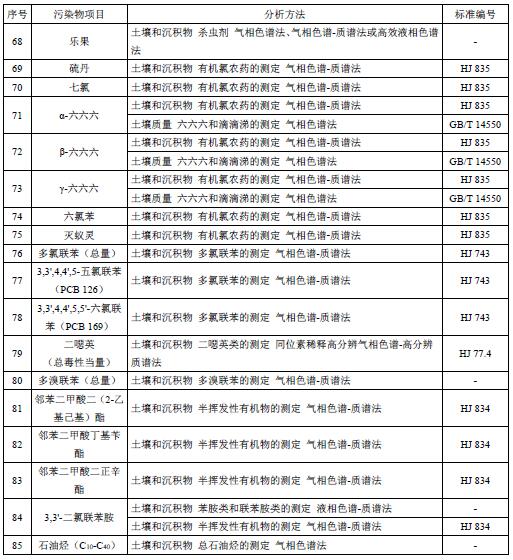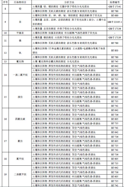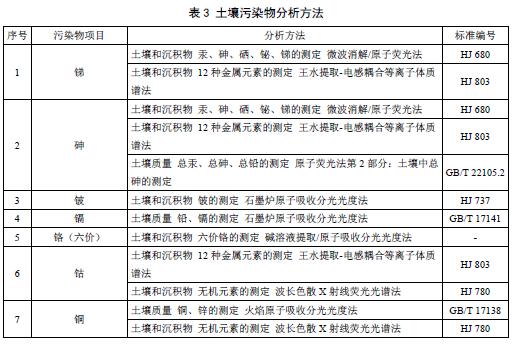 6.2土壤污染物分析方法按表3執(zhí)行。暫未制定分析方法標(biāo)準(zhǔn)的污染物項目,待相應(yīng)分析方法標(biāo)準(zhǔn)發(fā)布后實施。