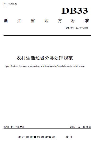 浙江地方標(biāo)準《農(nóng)村生活垃圾分類處理規(guī)范》已經(jīng)發(fā)布。規(guī)范將于2018年2月18日實施。全文如下: