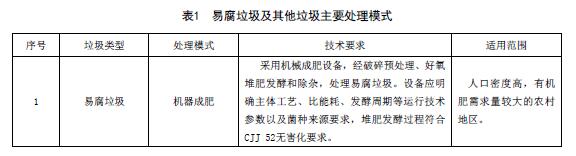 易腐垃圾及其他垃圾的主要處理模式見表1。
