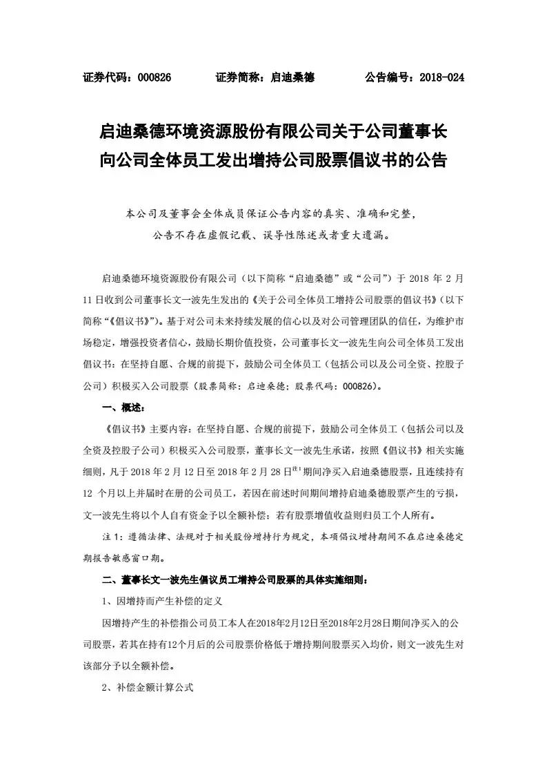 今2月11日,啟迪桑德發(fā)布一則重磅公告,基于對(duì)公司未來(lái)持續(xù)發(fā)展的信心以及對(duì)公司管理團(tuán)隊(duì)的信任,為維護(hù)市場(chǎng)穩(wěn)定,增強(qiáng)投資者信心,鼓勵(lì)長(zhǎng)期價(jià)值投資,文一波董事長(zhǎng)以個(gè)人名義向公司全體員工發(fā)出倡議書(shū)。