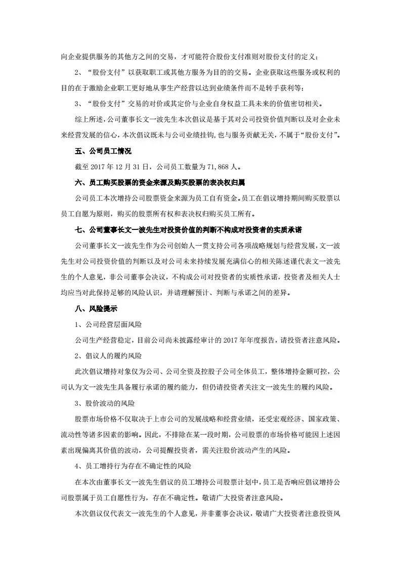 二、補(bǔ)償不設(shè)上限。“董事長(zhǎng)文一波先生將以自有資金現(xiàn)金形式對(duì)員工因增持公司股票并持續(xù)持有而產(chǎn)生的虧損予以全額補(bǔ)償,資金來(lái)源為自有資金,補(bǔ)償金額不存在最高金額限制。”換句話說(shuō)就是,虧多少,補(bǔ)多少,你虧,董事長(zhǎng)補(bǔ)!