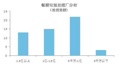 據(jù)E20數(shù)據(jù)中心不完全統(tǒng)計(jì),目前在庫餐廚項(xiàng)目處理規(guī)?;咎幱?00噸/日及以下,且50-100噸/日處理規(guī)模占比最多;投資額1億元以下的餐廚廠占比約一半。從投資額與處理規(guī)???,餐廚垃圾廠在市政基礎(chǔ)設(shè)施投資建設(shè)中處于適中位置。