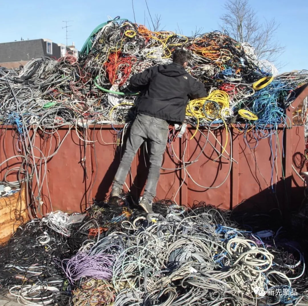 把塑料薄片被倒入擠壓機(jī)的容器后,就能擠壓出一條塑料線。這些塑料線可以有無數(shù)種可能,做刀的手柄,做鳥巢燈具、甚至是帽子、籃子都可以。