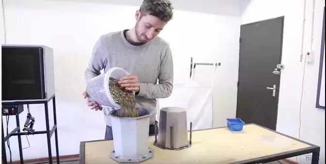 接下來,見證奇跡的時(shí)刻就到了!你只需要將塑料碎片倒進(jìn)壓縮機(jī)中,塑料就會(huì)自動(dòng)加熱,然后你把它們壓入模具。