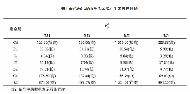 二、寶雞市污泥重金屬含量及風(fēng)險(xiǎn)評價(jià)
