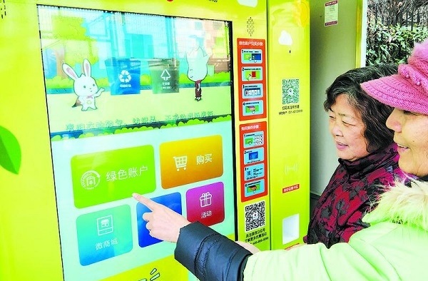 圖說(shuō):“綠色賬戶積分兌換機(jī)”前,居民用積分兌換禮品 來(lái)源/新民晚報(bào)記者 孫中欽 周馨 劉歆