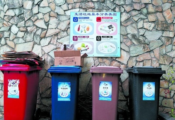 圖說(shuō):小區(qū)內(nèi)設(shè)置了分類投放垃圾桶,但居民垃圾分類投放意識(shí)仍需加強(qiáng)來(lái)源/新民晚報(bào)記者 孫中欽 周馨 劉歆