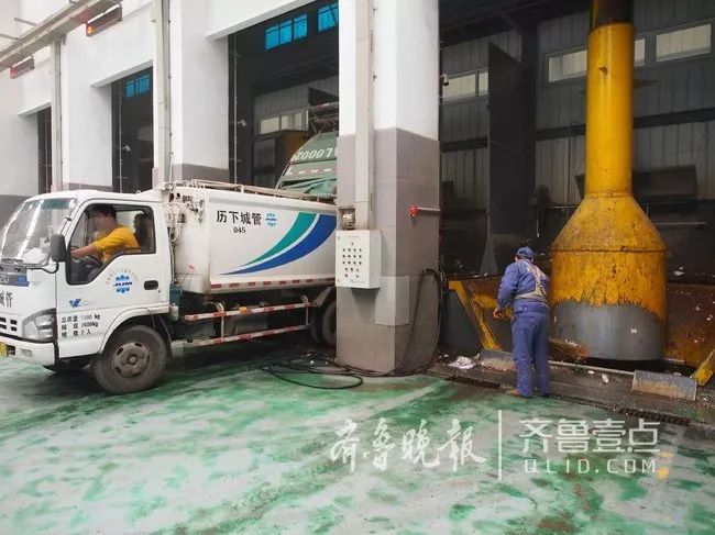 車上的黃傳勝師傅負(fù)責(zé)兩個(gè)小區(qū)垃圾收集,一天要在甸柳和轉(zhuǎn)運(yùn)中心至少往返3趟,一趟接近3小時(shí)。這已經(jīng)是他今天第二趟了,每天的第一趟垃圾收集在凌晨4點(diǎn)左右。兩個(gè)小區(qū)共約90個(gè)桶,分布在三四十個(gè)點(diǎn)位,歷下垃圾清運(yùn)要求日產(chǎn)多清、隨產(chǎn)隨清,黃傳勝師傅的一天可是相當(dāng)辛苦呢。