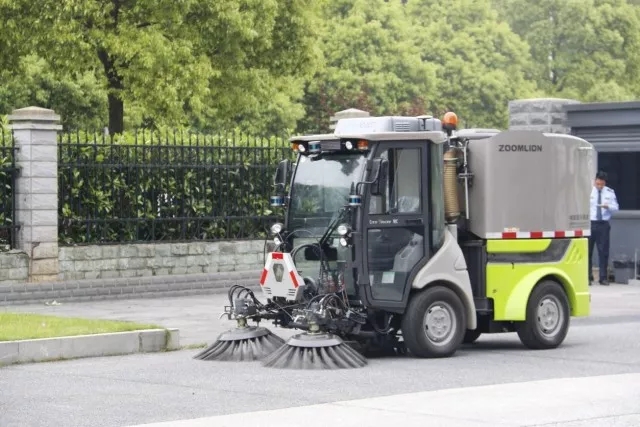 圖注:無人駕駛掃路車,無人駕駛系統(tǒng)與掃路車控制系統(tǒng)高度協(xié)調(diào),實現(xiàn)全工況無人駕駛功能