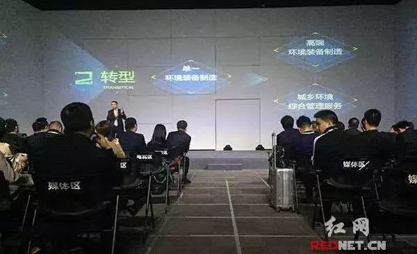 圖注:中聯(lián)環(huán)境執(zhí)行總裁陳培亮闡述兩個戰(zhàn)略轉(zhuǎn)型