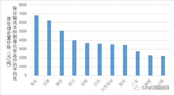 圖1.不完全統(tǒng)計各地危廢處理處置平均指導(dǎo)價