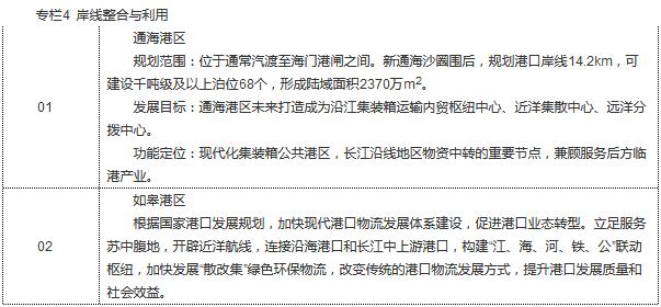 推進(jìn)岸線整合與利用。提升開(kāi)發(fā)利用區(qū)岸線使用效率,合理安排港口岸線、過(guò)江通道岸線、取排水口岸線??刂葡嚓P(guān)企業(yè)無(wú)序占用岸線,推進(jìn)公共碼頭建設(shè)。港口工業(yè)生產(chǎn)岸線騰退轉(zhuǎn)移,生活、生態(tài)岸線空間穩(wěn)步增加,實(shí)現(xiàn)“三生”空間有序發(fā)展,統(tǒng)籌重要過(guò)江通道岸線的控制預(yù)留。加快沿江原南通港區(qū)、任港港區(qū)、狼山港區(qū)、富民港區(qū)以及江海港區(qū)的分期轉(zhuǎn)移和整合,形成沿江五港區(qū)的總體格局。嚴(yán)控新增港口岸線利用,取消或調(diào)整與水源保護(hù)、生態(tài)紅線區(qū)域等有沖突的港口碼頭。對(duì)一些開(kāi)發(fā)布局不合理、未按國(guó)家有關(guān)規(guī)定、不符合規(guī)劃的開(kāi)發(fā)利用項(xiàng)目逐步加以糾正。對(duì)涉及岸線利用的各類違法違規(guī)行為,重點(diǎn)清理整頓,逐步消除存量,堅(jiān)決遏制增量。依法取締不具備安全生產(chǎn)條件、不符合環(huán)境保護(hù)要求的非法碼頭和裝卸點(diǎn),到2020年,沿江非法碼頭徹底消除。建立健全長(zhǎng)江岸線保護(hù)和開(kāi)發(fā)利用協(xié)調(diào)機(jī)制,統(tǒng)籌岸線與后方土地的使用和管理。探索建立岸線資源有償使用制度。