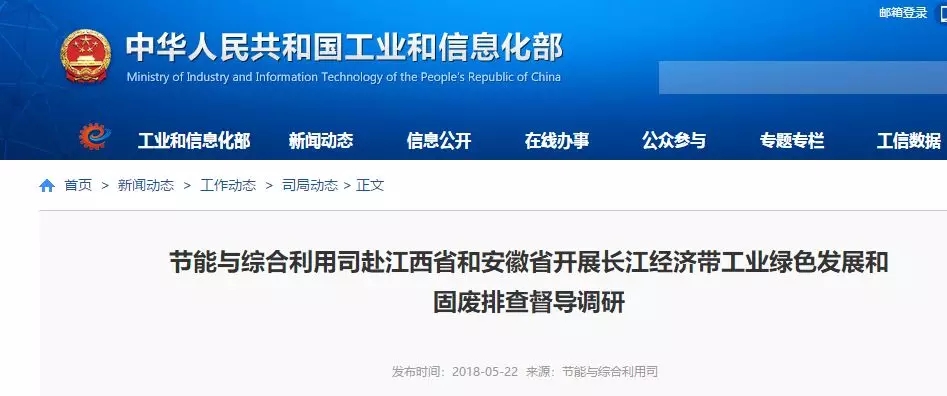 長江經濟帶工業(yè)綠色發(fā)展和固廢排查督導調研