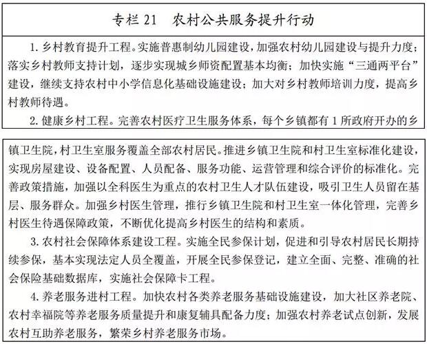 (三)實施數(shù)字鄉(xiāng)村戰(zhàn)略。綜合運用多種技術手段,持續(xù)推進農(nóng)村地區(qū)移動和固定寬帶網(wǎng)絡建設。引導移動、聯(lián)通、電信和廣電等電信運營企業(yè)加大農(nóng)村網(wǎng)絡建設投資,進一步提高農(nóng)村地區(qū)光纖寬帶接入能力,到2020年,農(nóng)村家庭基本具備100M以上接入能力。加大對農(nóng)村移動通信基站鐵塔建設的支持力度,擴大4G無線網(wǎng)絡覆蓋范圍,推動5G網(wǎng)絡布局和商用進程,基本實現(xiàn)農(nóng)村地區(qū)移動寬帶網(wǎng)絡人口全覆蓋。落實農(nóng)村地區(qū)網(wǎng)絡提速降費政策,鼓勵電信運營企業(yè)推出面向貧困戶的網(wǎng)絡資費優(yōu)惠。建設信息進村入戶平臺,完善農(nóng)村消費信息服務、市場信息服務、“三農(nóng)”政策服務、農(nóng)村生活服務等系統(tǒng)和手機APP,推進服務手段向移動終端延伸,服務方式向精準投放轉變。推動遠程醫(yī)療、遠程教育等應用普及,建立空間化、智能化的新型農(nóng)村統(tǒng)計信息綜合服務系統(tǒng),彌合城鄉(xiāng)數(shù)字鴻溝。