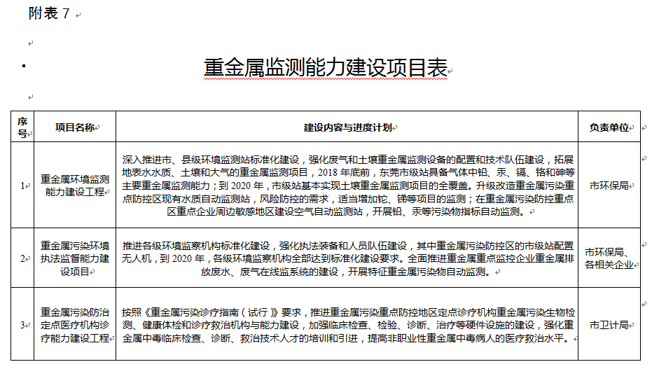 7. 重金屬監(jiān)測能力建設(shè)項(xiàng)目表