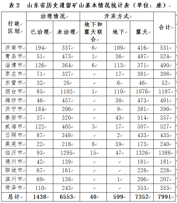 開(kāi)展新一輪山東省礦山地質(zhì)環(huán)境詳細(xì)調(diào)查,完成1:5萬(wàn)礦山地質(zhì)環(huán)境調(diào)查面積34000平方千米,調(diào)查年度為2022年。