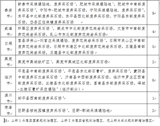 部署開(kāi)展“三區(qū)兩線”可視范圍內(nèi)歷史遺留露天開(kāi)采礦山地質(zhì)環(huán)境治理工程,到2020年治理歷史遺留露天開(kāi)采礦山577座,治理面積0.45萬(wàn)公頃,主要分布于青島、煙臺(tái)、泰安、日照、臨沂等地(表8)。