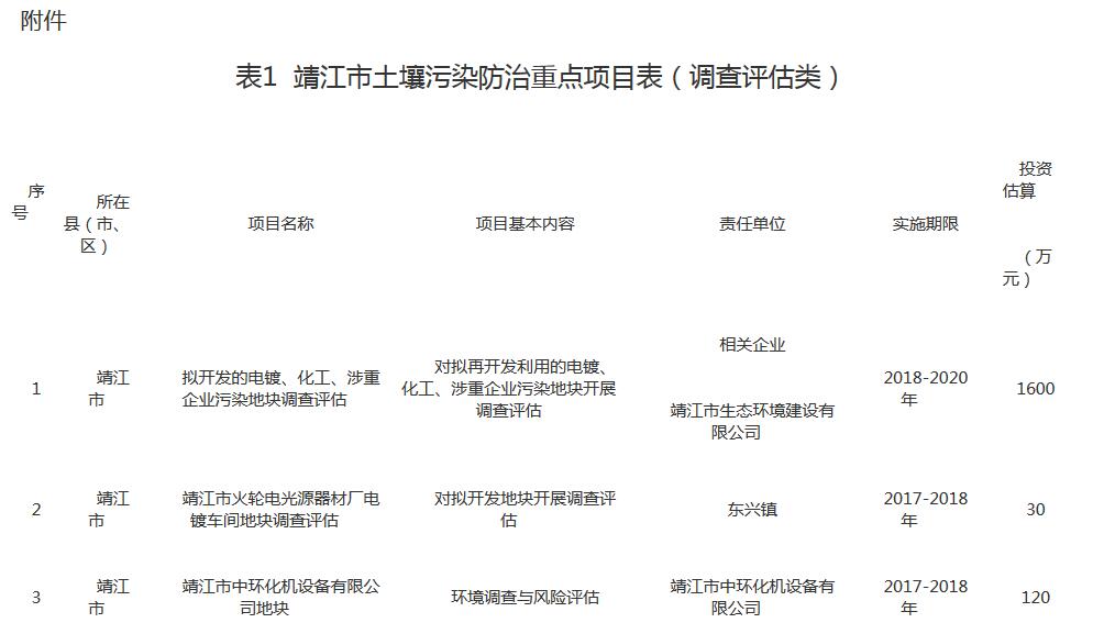 附件:靖江市土壤污染防治重點項目表
