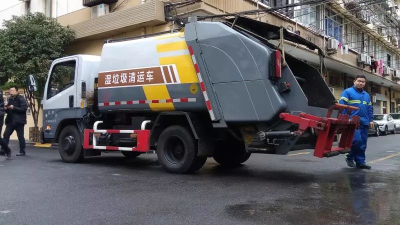 ⑤干垃圾車(chē)離開(kāi)后,濕垃圾車(chē)駛?cè)胄^(qū)