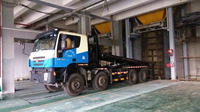⑨集裝箱塞滿(mǎn)垃圾后,將被放置到集運(yùn)卡車(chē)上