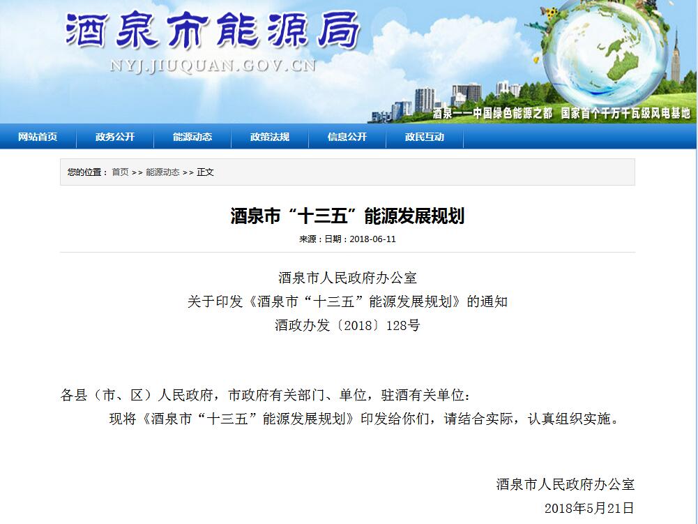 分類:產(chǎn)業(yè)市場 > 規(guī)劃研報 發(fā)布時間:2018年7月9日 14:24 作者:來源:酒泉市能源局 文章來源:北極星固廢網(wǎng)