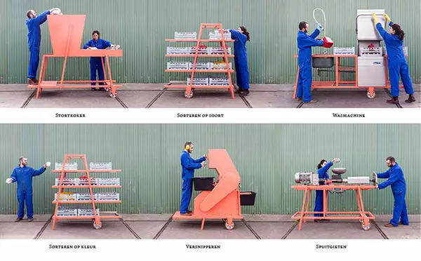 Bureau SLA 和Overtreders W 是兩家總部位于阿姆斯特丹的設(shè)計公司,它們正在把塑料垃圾轉(zhuǎn)變?yōu)閸湫碌慕ㄖ牧稀!爸腔鄣牡图夹g(shù)等同于嶄新的高技術(shù)”正是他們的設(shè)計理念。 “美麗塑料車間項目”是獨一無二的創(chuàng)新項目,由建筑師和設(shè)計師合作,把塑料垃圾制作成可用的建筑外立面材料。這一創(chuàng)新團(tuán)隊認(rèn)為世上不存在廢物,除了制造時被賦予的功能,任何物品都有更多的功能,塑料尤其如此。