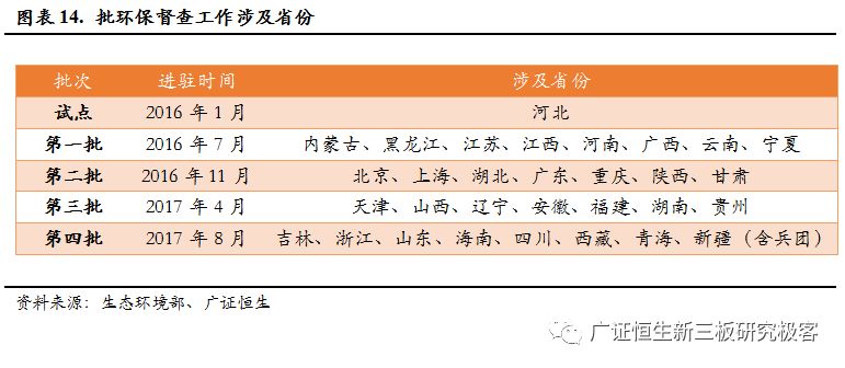 2015 年 7 月中央印發(fā)《環(huán)境保護督察方案(試行)》,把環(huán)境保護督察作為推動生態(tài)文明建設(shè)的重要抓手。從 2016 年開始,在河北省開展試點的基礎(chǔ)上,中央分 4 批對各省市黨委、政府開展環(huán)保督察工作,實現(xiàn)了全覆蓋。