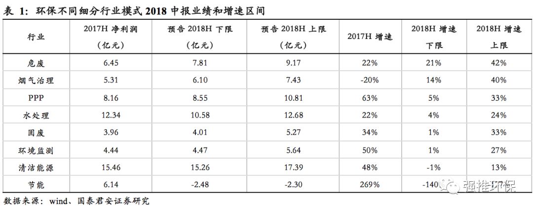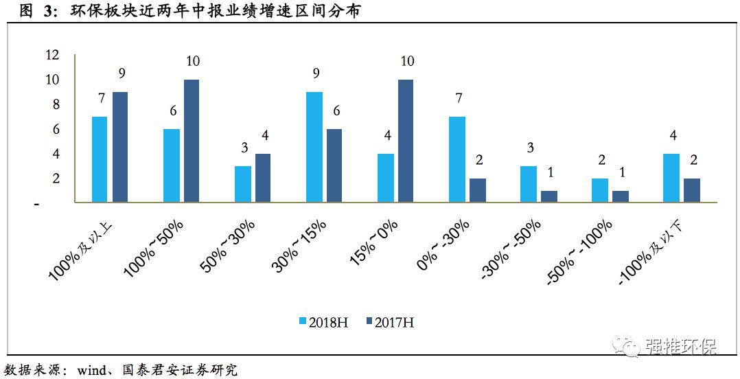 摘要:環(huán)保板塊半年報預(yù)告增速為-9.7%-9.9%,剔除異常公司后增速為7.6%-29.1%,回落明顯。環(huán)保板塊共有45家上市公司披露業(yè)績預(yù)告,板塊增速在-9.7%-9.9%之間,相對于上年同期環(huán)保板塊整體49.4%的凈利潤增速下滑明顯;剔除掉神霧環(huán)保、神霧節(jié)能、盛運環(huán)保等經(jīng)營異常公司后,環(huán)保板塊披露業(yè)績預(yù)告的凈利潤增速區(qū)間在7.6%~29.1%之間,仍較這些可比樣本公司上年同期36.7%的凈利潤增速有所下滑。