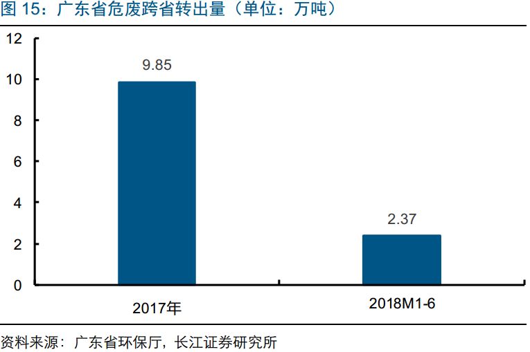 2017年跨省轉(zhuǎn)出危廢約10萬噸,集中去湖南、安徽。