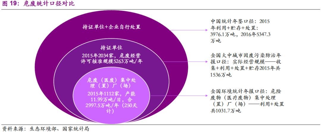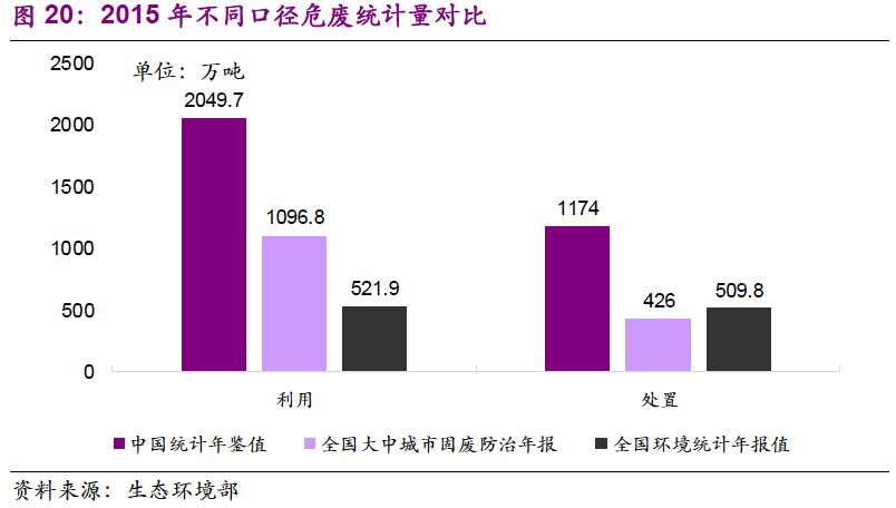 由于統(tǒng)計(jì)范圍差異,危廢產(chǎn)生、利用和處置量存在不同口徑值。