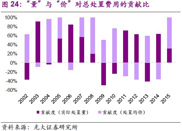 2. 創(chuàng)新性提出“量”和“價(jià)”雙驅(qū)動(dòng)力解析,并對(duì)其歷史性波動(dòng)做出解釋。我們認(rèn)為,處置量提高的驅(qū)動(dòng)因素已經(jīng)由工業(yè)發(fā)展轉(zhuǎn)變?yōu)榄h(huán)保執(zhí)法,價(jià)格波動(dòng)反映供需邊際變化,短端呈上行趨勢(shì),長(zhǎng)端隨著供給提升將逐步回穩(wěn)。