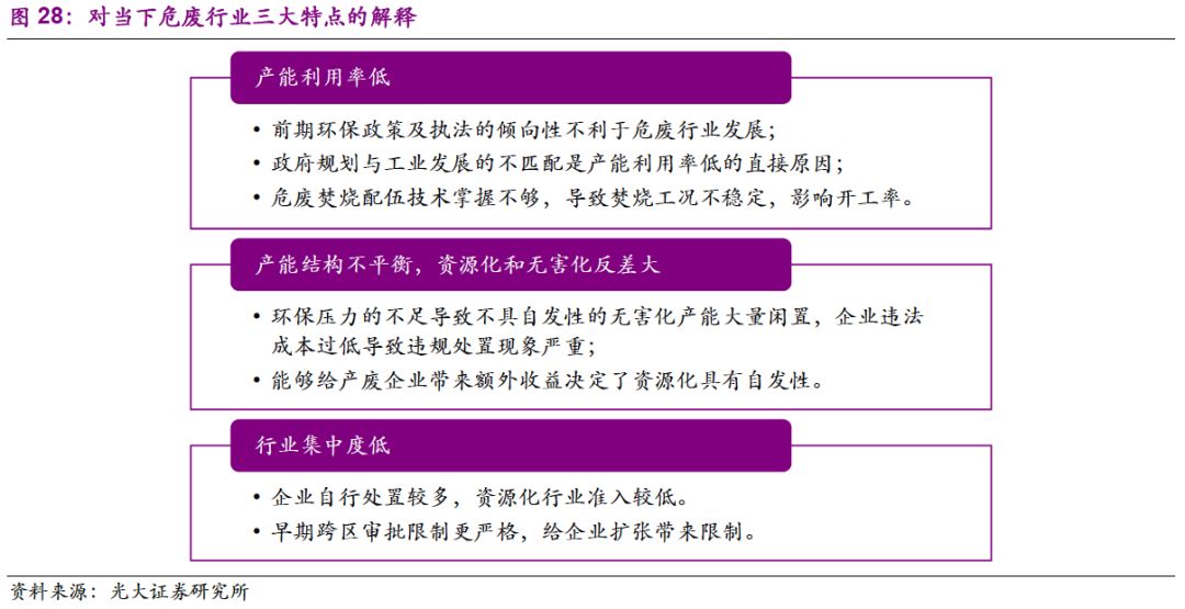 我們認(rèn)為,當(dāng)前危廢行業(yè)的三大痛點(diǎn)分別是:產(chǎn)能利用率低、產(chǎn)能結(jié)構(gòu)不平衡和行業(yè)集中度低。