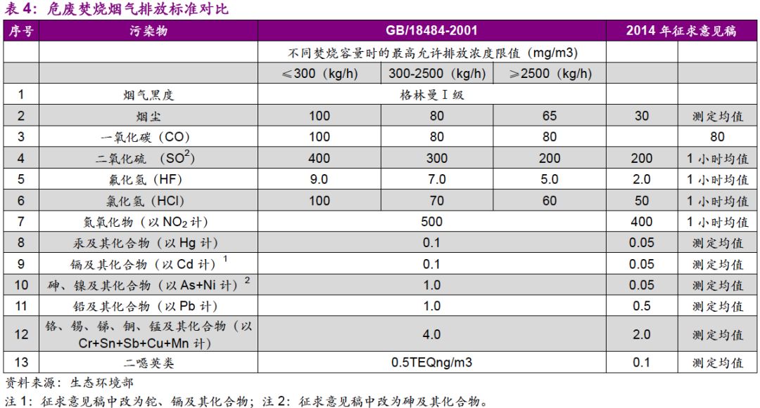 危廢行業(yè)提標(biāo)是必然趨勢(shì)。對(duì)比生活垃圾焚燒領(lǐng)域,2014年出臺(tái)的《生活垃圾焚燒污染控制標(biāo)準(zhǔn)》/GB18458-2014在二噁英、汞及其化合物指標(biāo)上就已經(jīng)達(dá)到了歐盟標(biāo)準(zhǔn)。2017年8月,《〈生活垃圾焚燒污染控制標(biāo)準(zhǔn)〉(GB18485-2014)修改單(征求意見(jiàn)稿)》編制說(shuō)明中明確提出參照歐盟《歐盟工業(yè)排放指令》(2010/75/EC)。因此,危廢領(lǐng)域排放標(biāo)準(zhǔn)向歐盟靠齊是必然趨勢(shì)。