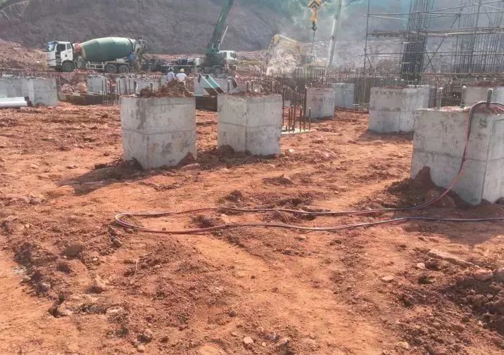 (6)煙囪基礎(chǔ)開挖完成,墊層澆筑完成;