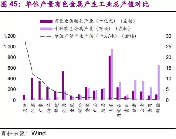 針對(duì)本次環(huán)保督察中有色金屬冶煉廢物存量較大的省份,我們發(fā)現(xiàn)兩大特點(diǎn)。1)有色金屬相關(guān)產(chǎn)業(yè)總產(chǎn)值占工業(yè)總產(chǎn)值比重較大。如甘肅、江西、青海、云南等地,占比均在10%以上。2)單位產(chǎn)量有色金屬產(chǎn)生工業(yè)總產(chǎn)值較低。如內(nèi)蒙古、貴州、甘肅、云南、青海、新疆,每噸總產(chǎn)值均低于7萬元。