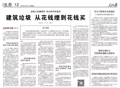 《人民日?qǐng)?bào)》近日發(fā)文,關(guān)注湖北、江蘇等地在建筑垃圾的資源化利用方面做出的探索。