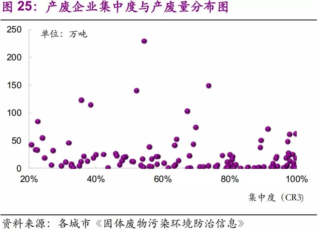 集中度低的影響:1)企業(yè)產(chǎn)值占比較小,與政府話(huà)語(yǔ)權(quán)較弱,環(huán)保政策推行壓力小;2)工業(yè)結(jié)構(gòu)復(fù)雜,產(chǎn)物種類(lèi)多,處置要求及單價(jià)更高。