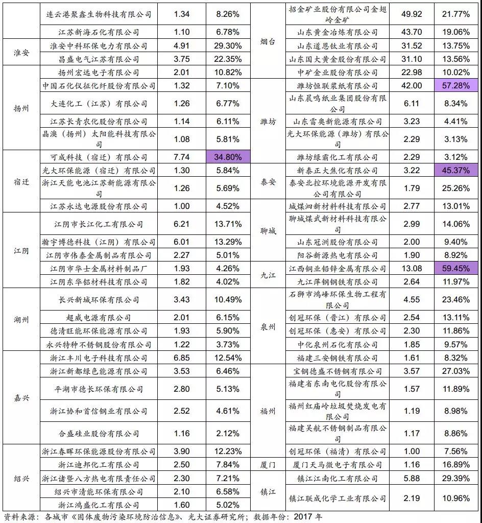 受益于規(guī)模優(yōu)勢(shì)和經(jīng)營(yíng)規(guī)范,生產(chǎn)規(guī)模較大企業(yè)(多為上市公司)相對(duì)受益。通過(guò)治理小、散、亂,關(guān)停小作坊,導(dǎo)致局部產(chǎn)能收緊,相關(guān)行業(yè)產(chǎn)品價(jià)格上漲,從而帶來(lái)行業(yè)景氣度提升和企業(yè)利潤(rùn)增厚。此外,環(huán)保標(biāo)準(zhǔn)提高及執(zhí)法趨嚴(yán)迫使企業(yè)加大環(huán)保投資,此為環(huán)保行業(yè)的“加法”邏輯,規(guī)模越大的企業(yè)單位產(chǎn)品所承擔(dān)的環(huán)保邊際成本越小。