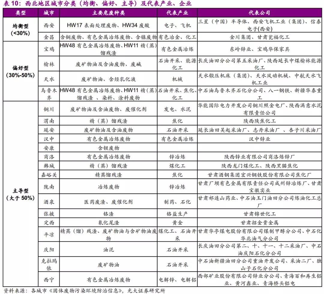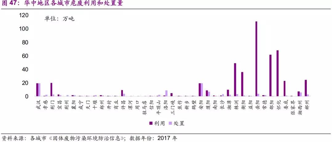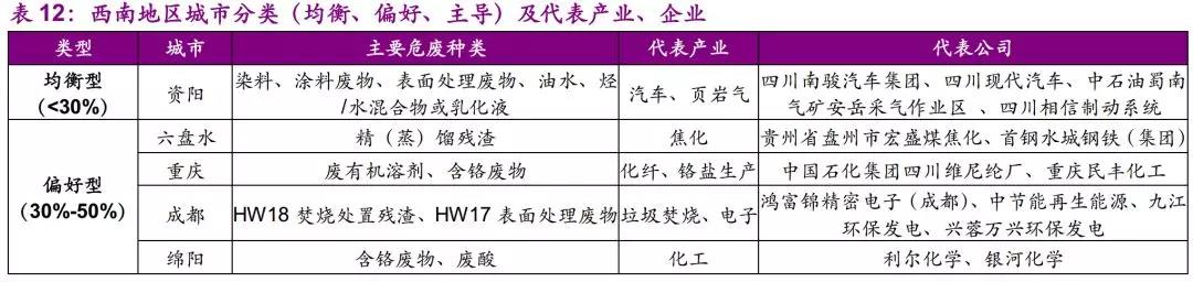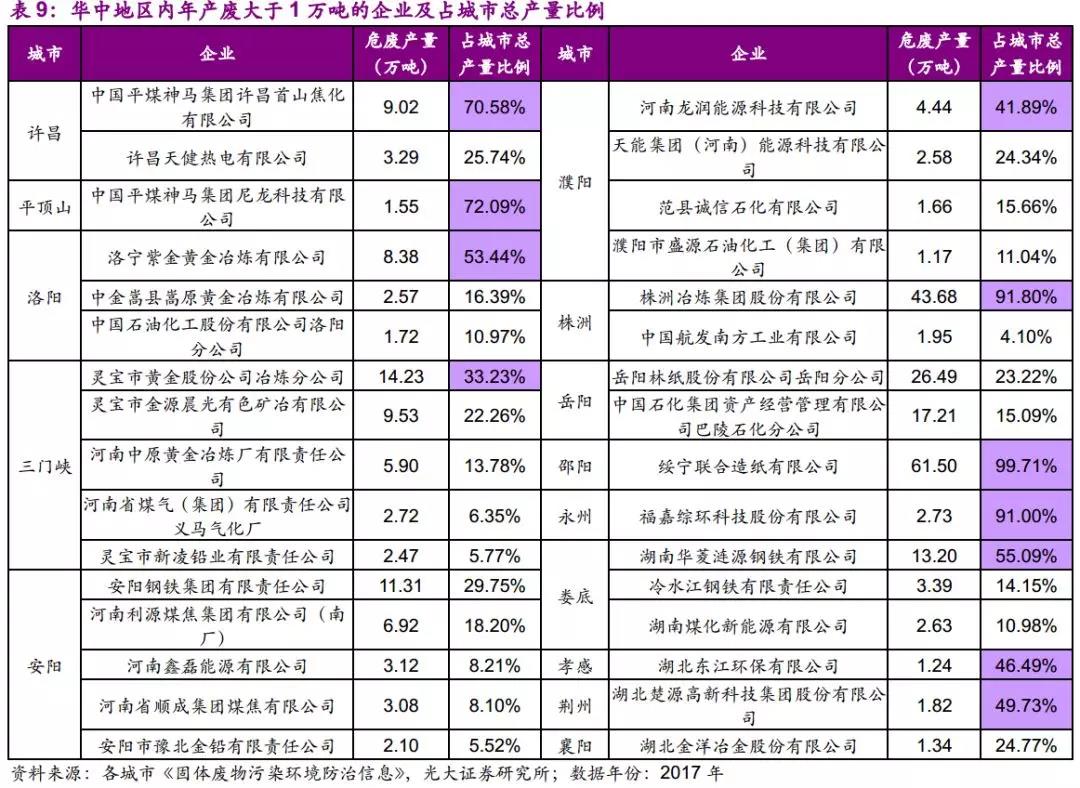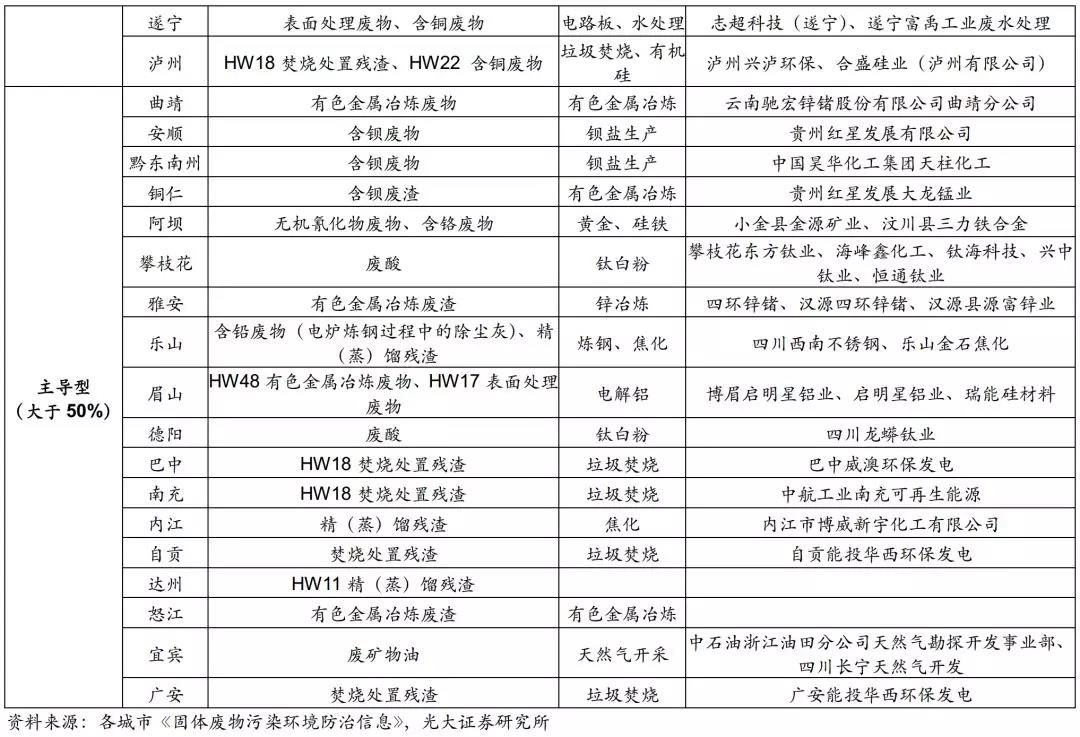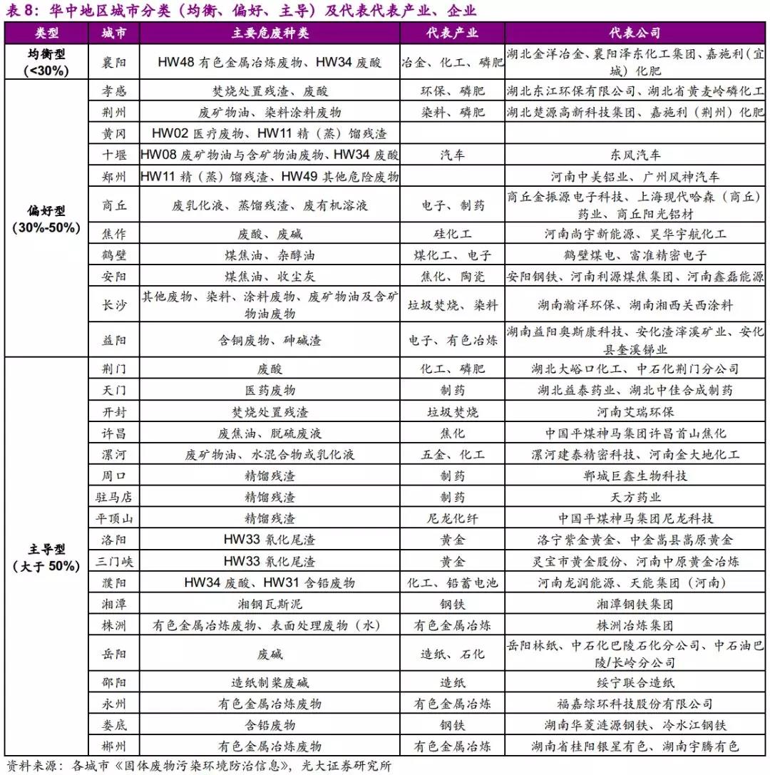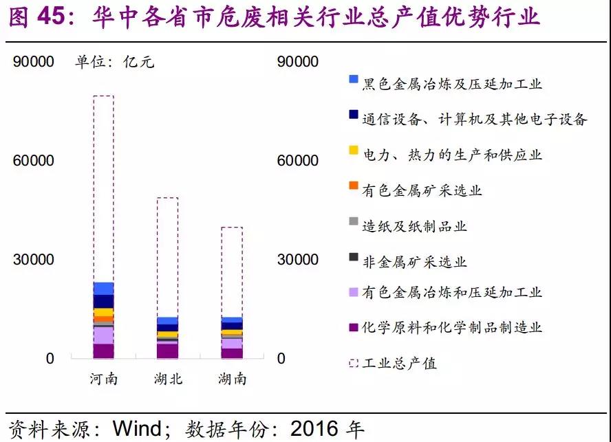 因此,我們認(rèn)為華中地區(qū)危廢種類(lèi)較為復(fù)雜,建議關(guān)注有色金屬冶煉和壓延加工業(yè)及化學(xué)原料和化學(xué)制品制造業(yè)所產(chǎn)生的危廢,如有色金屬冶煉廢物、廢堿等。