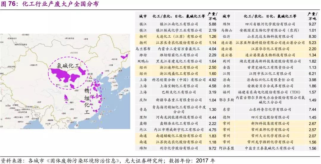 因此,我們建議關(guān)注華東地區(qū)化學(xué)原料和化學(xué)制品制造業(yè)、通信設(shè)備、計(jì)算機(jī)及其他電子設(shè)備制造業(yè)所產(chǎn)生的危廢,如蒸餾(精餾)殘?jiān)?、含銅廢液等。