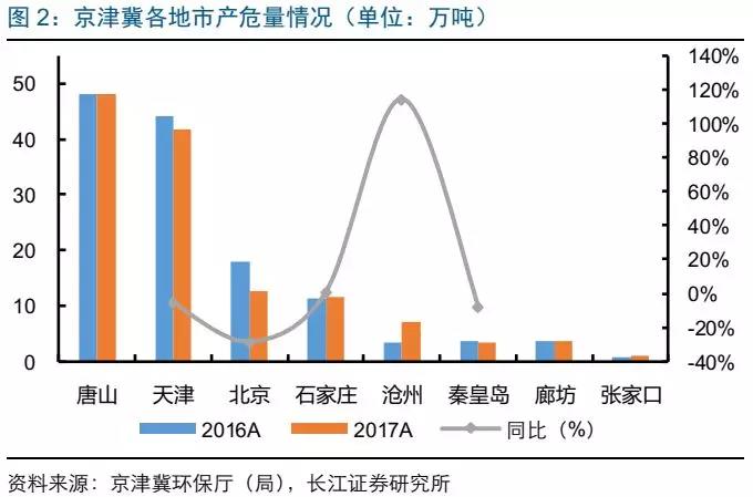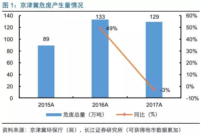 危廢產(chǎn)生量:京津冀產(chǎn)危量同比下滑