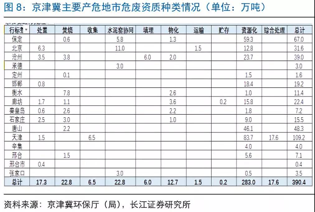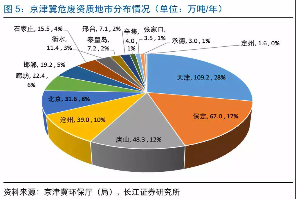 目前京津冀危廢產(chǎn)能達(dá)390萬噸,天津保定占45%