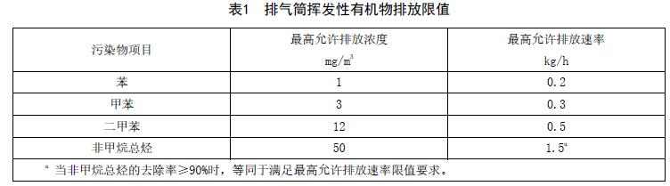 5.2.1 排氣筒揮發(fā)性有機物排放濃度和排放速率應(yīng)執(zhí)行表1規(guī)定的限值。