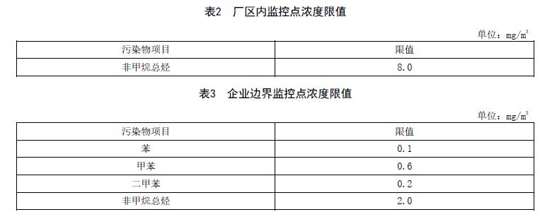 5.3.1 無組織排放監(jiān)控點濃度限值應(yīng)執(zhí)行表2、表3 的規(guī)定。