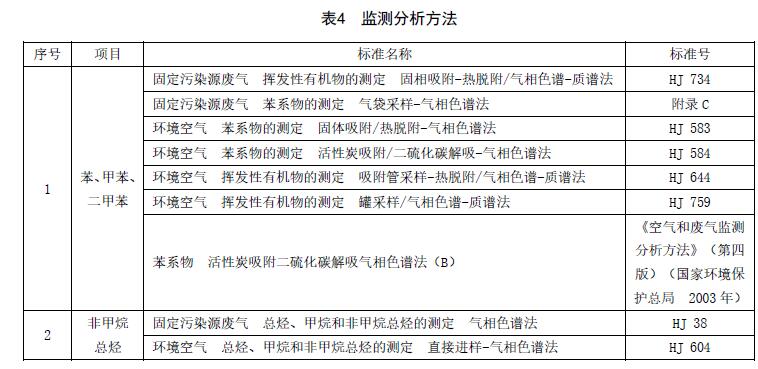 揮發(fā)性有機物濃度的測定應(yīng)采用表4所列的方法標準或國家主管部門認定的等效方法。