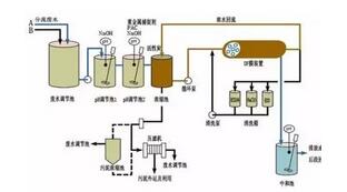 當單一的處理方法處理效果不理想時,為了達到污水排放的標準,可以使用多種方法聯(lián)合的方式。最常見的是物理-化學處理法,其基本工藝如下: