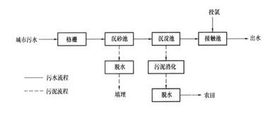活性污泥工藝是國內(nèi)外城市污水處理工藝的主流。由于其較高的處理效率,運行穩(wěn)定可靠,而被大中型污水處理廠廣泛使用。其基本工藝流程圖如下: