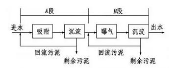 A-B工藝是吸附-生物降解工藝的簡稱,A段由吸附池、中間沉淀池組成,B段由曝氣池和二次沉淀池組成,A、B段由各自的回流系統(tǒng),A段負荷高,經(jīng)過A段吸附某些重金屬和難降解物質(zhì),提高可生化性,有利于B段處理,同時還有脫氮除磷作用,B段負荷低,在水質(zhì)、水量方面比較穩(wěn)定。